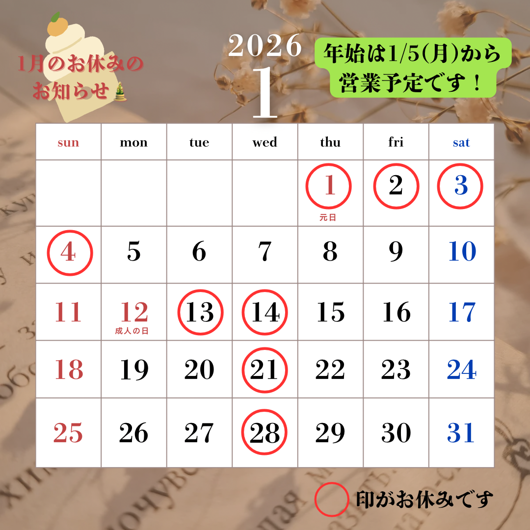1月のお休みのお知らせです📢