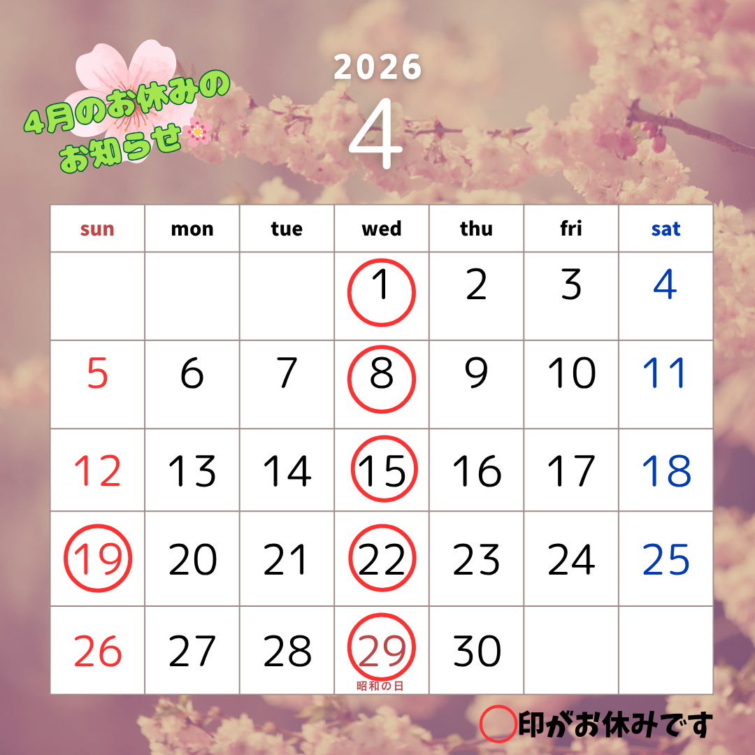4月のお休みのお知らせです- ̗̀📣