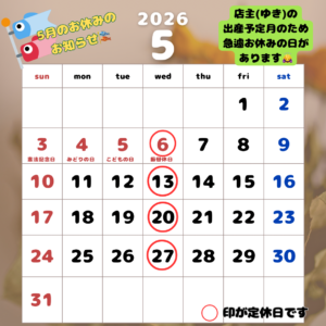 • 5月のお休みのお知らせ🎏📢